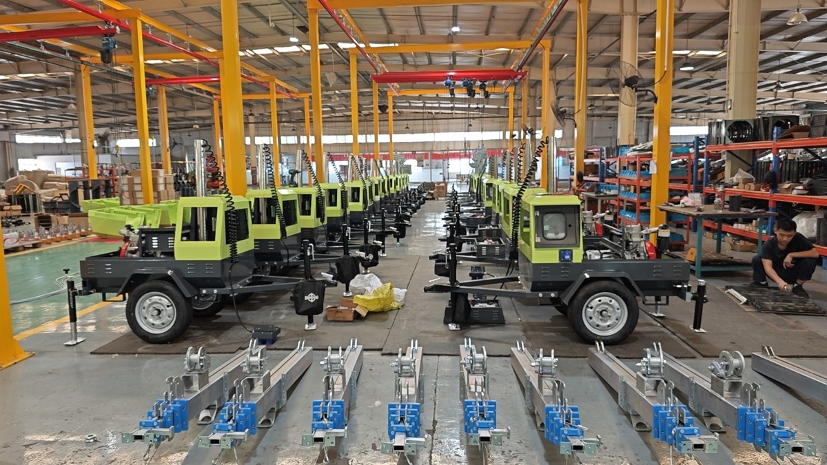 某國(guó)外客戶(hù)經(jīng)過(guò)考察對(duì)比,先購(gòu)買(mǎi)我廠3臺(tái)移動(dòng)照明車(chē)進(jìn)行試用,試用效果十分滿(mǎn)意,經(jīng)過(guò)評(píng)估又繼續(xù)追加27臺(tái),以下為生產(chǎn)裝配現(xiàn)場(chǎng)